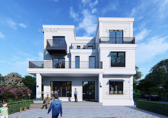 占地面積 288.4㎡ 土建造價 120.0萬 白色現代別墅