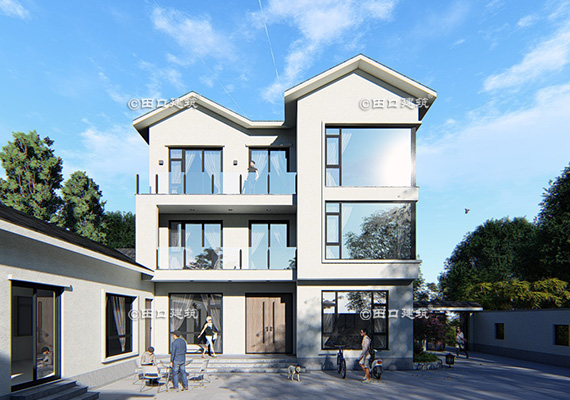 占地面積 142.4㎡ 土建造價 60.0萬 帶底商三層美式別墅